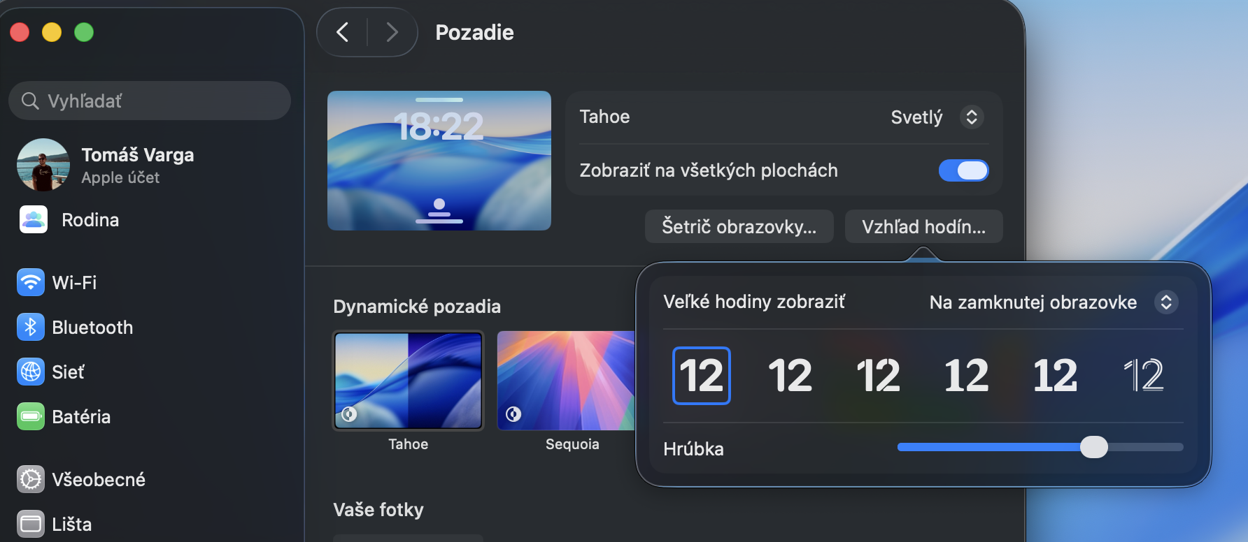 Apple po novom umožňuje meniť štýl zobrazovania hodín na uzamknutej obrazovke Macu. Aj keď nie je možné upraviť veľkosť písma, pribudla možnosť vybrať si zo šiestich rôznych fontov a nastaviť ich hrúbku pomocou posuvníka. Ide o ďalší spôsob, ktorým Apple dáva viac slobody používateľom, ako si prispôsobiť svoje zariadenie.