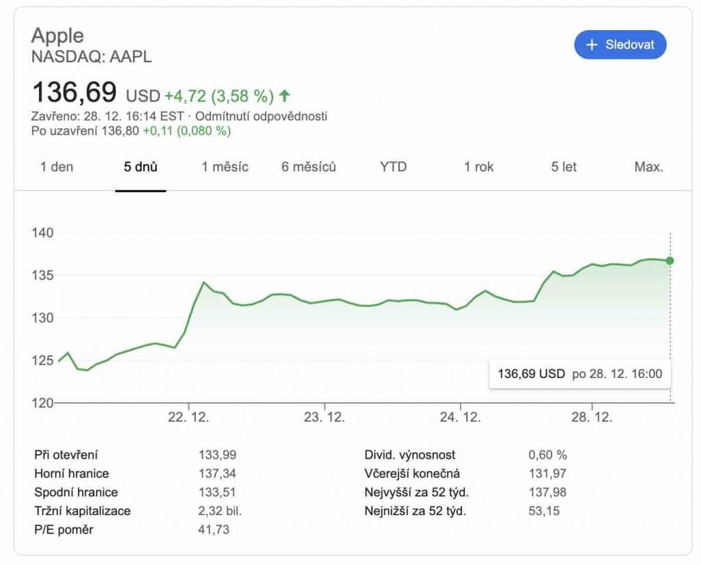 Cupertinskému gigantovi sa darilo omnoho lepšie, ako by bol pred 8 mesiacmi ktokoľvek povedal. V čase vypuknutia koronakrízy nedosahovali akcie hodnotu ani len 1 bilión dolárov. Trh sa však rýchlo spamätal a firma začala raketovo stúpať. Predchádzalo tomu predstavenie iPhonu SE druhej generácie a ďalších produktov.
