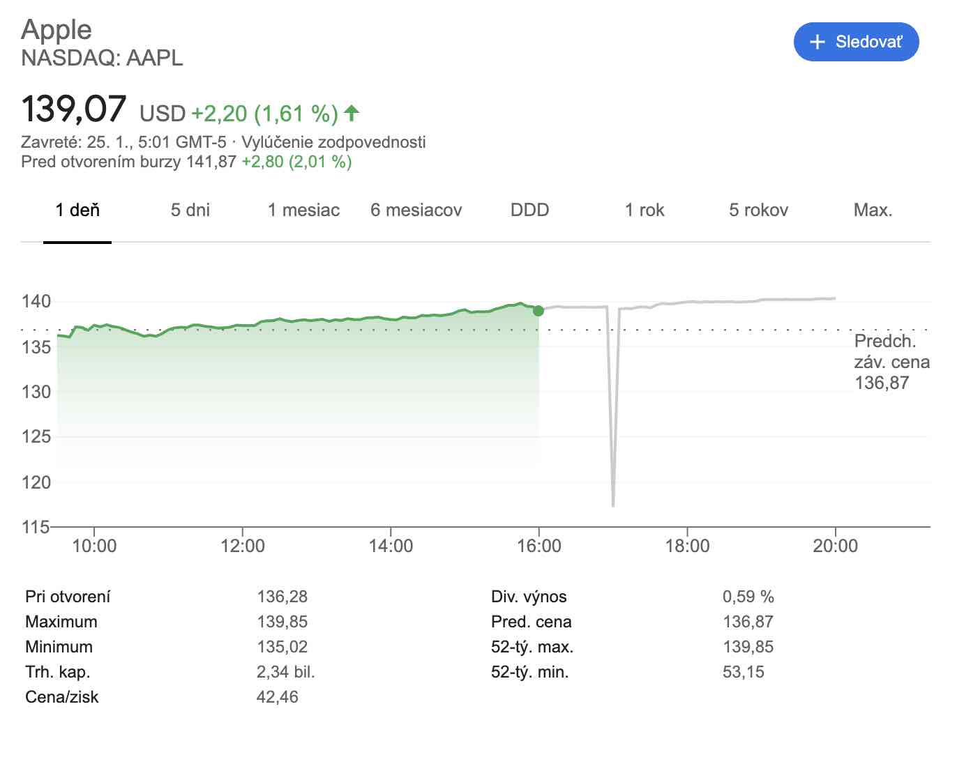 Tim Cook sa vo svojej kancelárii momentálne raduje. Technologická spoločnosť pod jeho vedením prekonala ďalšie historické maximum. Apple počas piatku minulého týždňa dosiahlo hodnotu 139,85$ za jednu akciu, čím sa stanovil rekord. Všetko to prichádza tesne pred oficiálnym vyhlásením finančných výsledkov za Q4 2020.