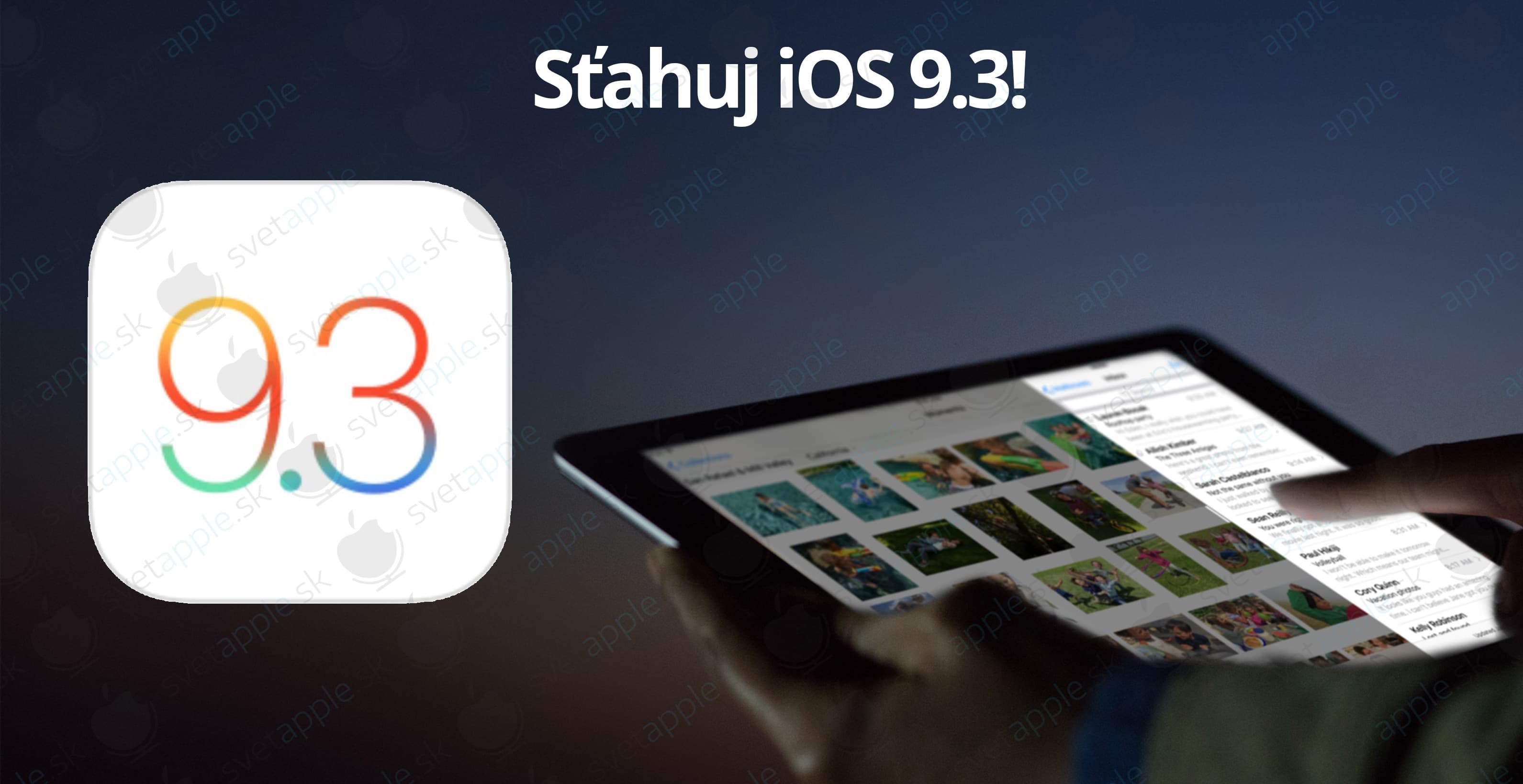 Po dlhom beta testovaní (až 7 beta verzii) trvalo, kým Apple predstavilo tento iOS. Treba poznamenať, že skutočne pracovalo na tom, aby bola jeho stabilita a funkčnosť na najvyššej možnej úrovni. Neustále aktualizácie opravili aj prvotné chyby a teraz je čas na jednú veľkú aktualizáciu, ktorá prinesie množstvo noviniek. Táto aktualizácia sa nazýva 9.3. Dnes si ju môžeš stiahnuť už aj ty! Aké zmeny priniesla aktualizácia sa dočítaš v našom článku: Sťahuj iOS 9.3!