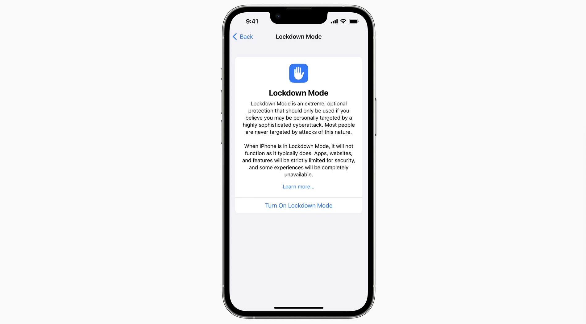 Po jeho zapnutí systém výrazne obmedzí niektoré funkcie zariadenia a sieťové pripojenia, čím znižuje riziko zneužitia bezpečnostných dier. Pre väčšinu používateľov iPhonov, iPadov a Macov sú štandardné ochranné mechanizmy systému iOS, iPadOS a macOS viac než postačujúce. Špeciálny bezpečnostný režim však funguje ako nadstavba.