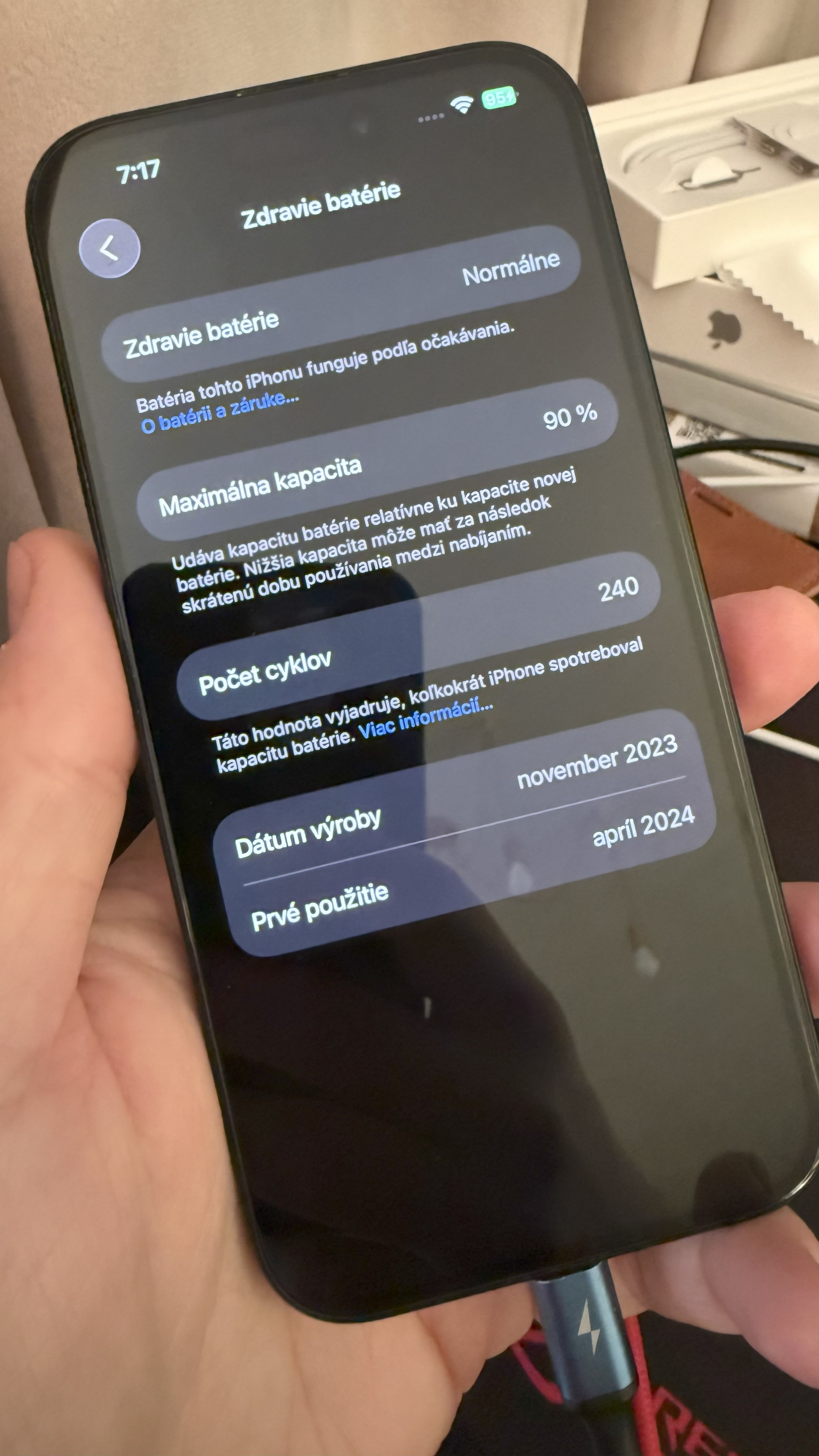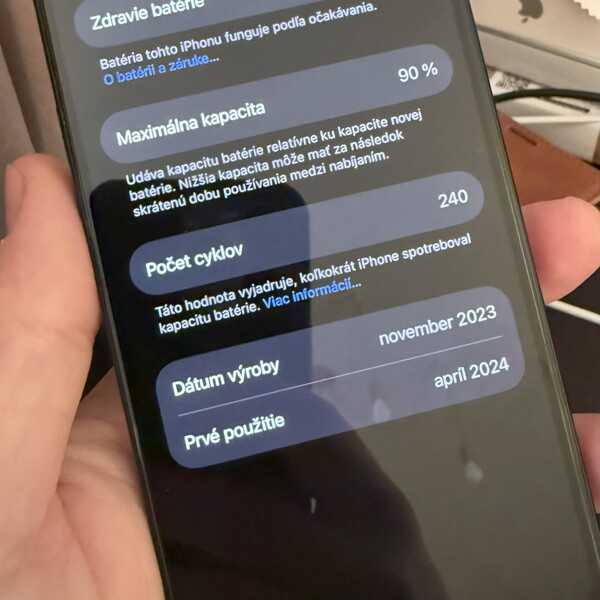 Kupovaný koncom marca 2024 v Telekome, zdravie batérie 90%.