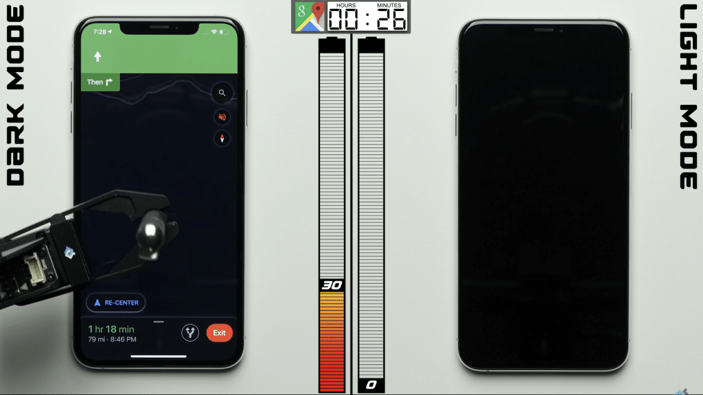 Po niekoľkých hodinách otvárania a zatvárania apiek začal dominovať iPhone s tmavým režimom. V závere testu malo toto zariadenie 30% prevahu. Zatiaľ čo model bez tejto funkcie zhasol a nedal sa používať, jeho „braček“ mal pred sebou niekoľko desiatok minút či dokonca hodín do úplného vybitia.