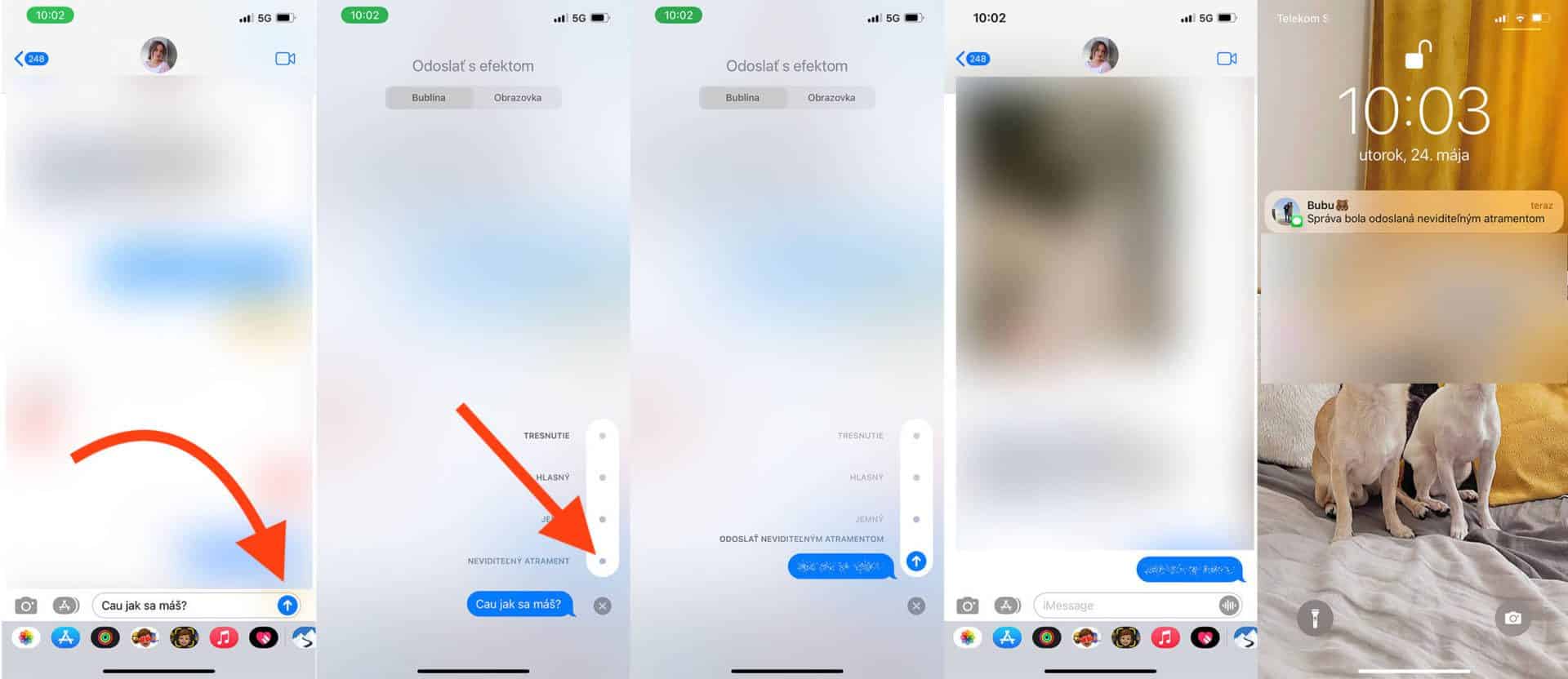 Poznámka: Niekedy sa stáva, že táto funkcia nefunguje a používatelia nevedia, kde urobili chybu. Absolútne najčastejšie to spôsobuje fakt, že cez svoje zariadenie neodosielajú iMessage správy ale klasické SMS správy, kde neviditeľný atrament nie je k dispozícii. iMessage sú vždy označené modrou farbou a SMS zelenou farbou.