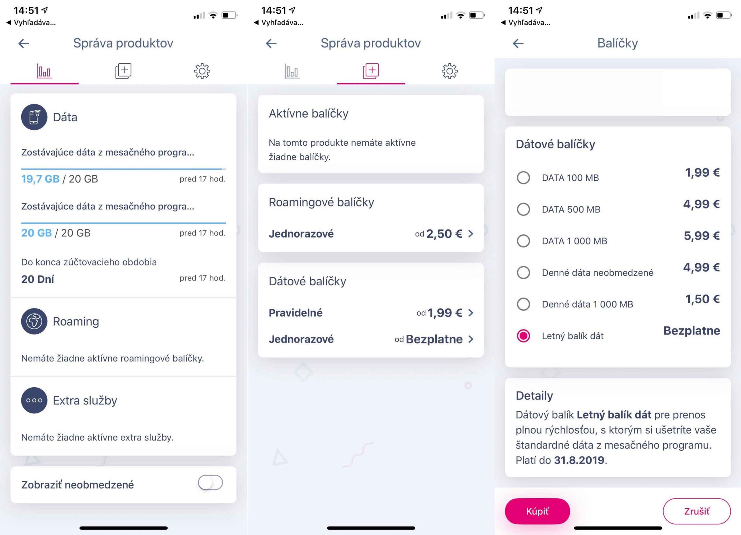 - Stlačte „Letný balík dát“ a vyberte „Kúpiť“.