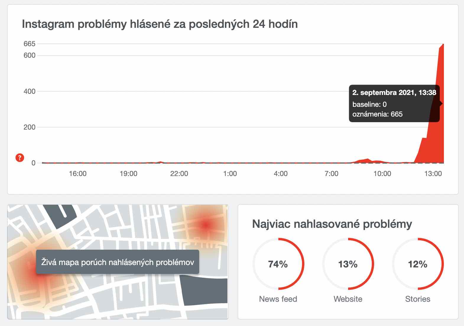 Ako hlási internetová stránka Downdetector.sk, približne od 13:00 ľuďom nefunguje načítanie príspevkov, internetová stránka a taktiež príbehy.