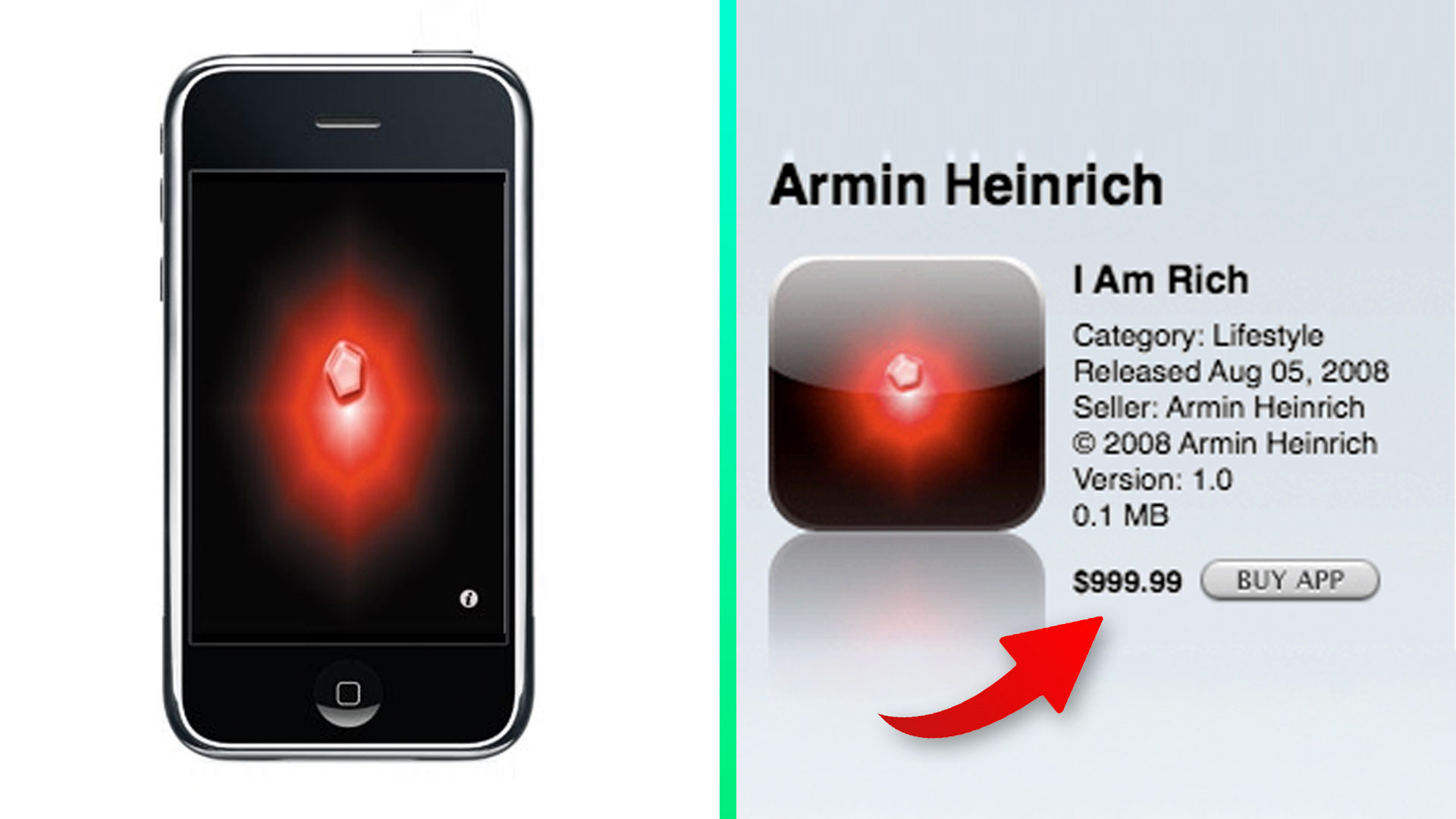 Keď nemecký vývojár Armin Heinrich v roku 2008 vydal aplikáciu I Am Rich, pravdepodobne netušil, že sa stane jedným z najikonickejších internetových fenoménov. Aplikácia za 999,99 dolára (V prepočte na dnešné približne 1 460 dolárov) zobrazovala iba červený žiariaci drahokam a po kliknutí naň krátke „mantra“ o bohatstve a úspechu.