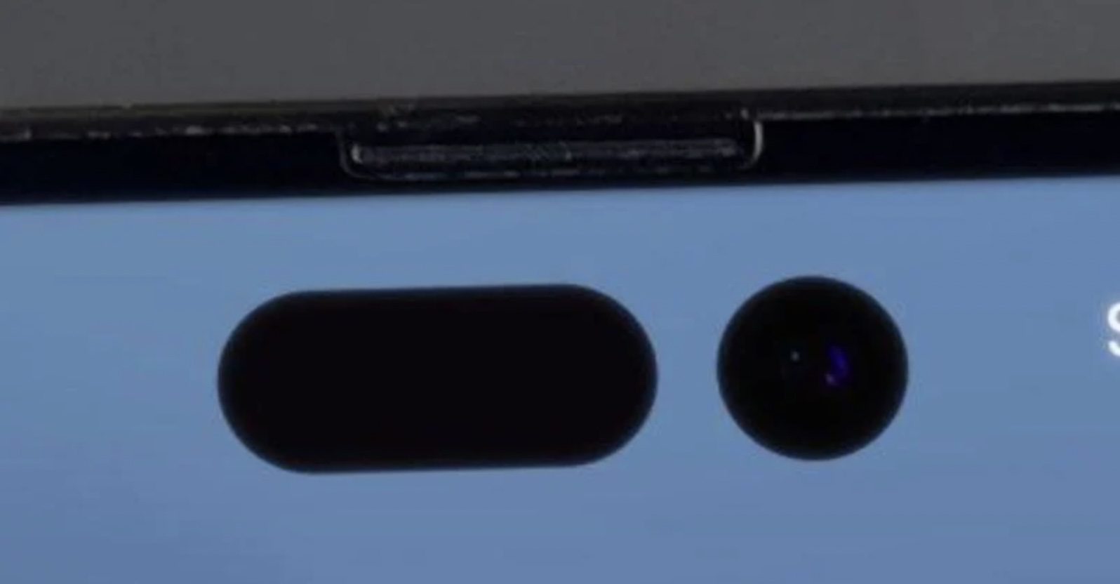Tie zachytávajú detailný záber na nový výrez pre Face ID, ktorý pozostáva z dvoch priestrelov displeja. Jeden je v tvare pilulky a nachádzajú sa v ňom senzory a druhý je v tvare kruhu a nachádza sa v ňom predná kamera.