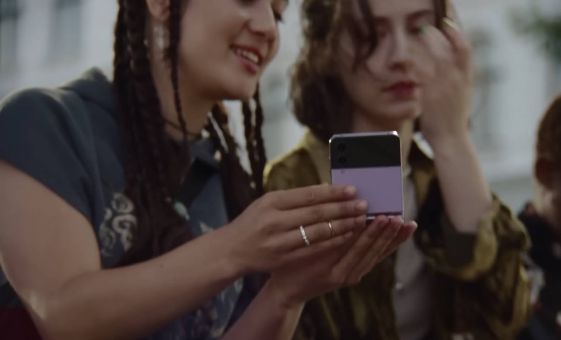 Video, ktoré bolo zverejnené na YouTube začína ženou, ktorá ukazuje svoje skladacie zariadenie Galaxy Z Flip4 používateľke klasického smartfónu (pravdepodobne iPhonu).