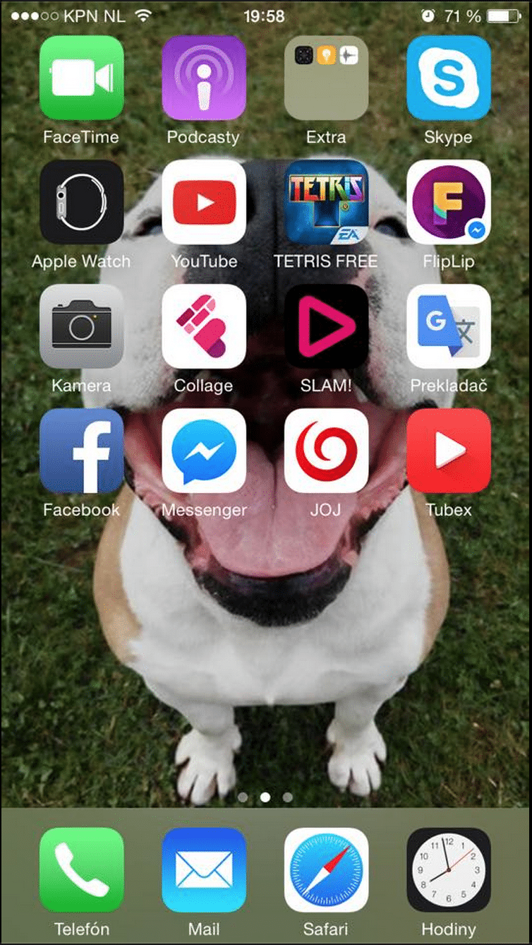 Klasika číslo 2. Autor tu má len to najnutnejšie zoradené pekne a jednoducho. Samozrejme nesmú chýbať aplikácie Tatra Banka či Čítačka, pre lepšiu manipuláciu s peniazmi. Odporúčame aby si autor už otvoril ten Instagram, keďže je jasné, že si ho len nainštaloval, no ďalej sa mu nevenoval, no a prvý follow môže dať rovno nám priamo sem! 🙂