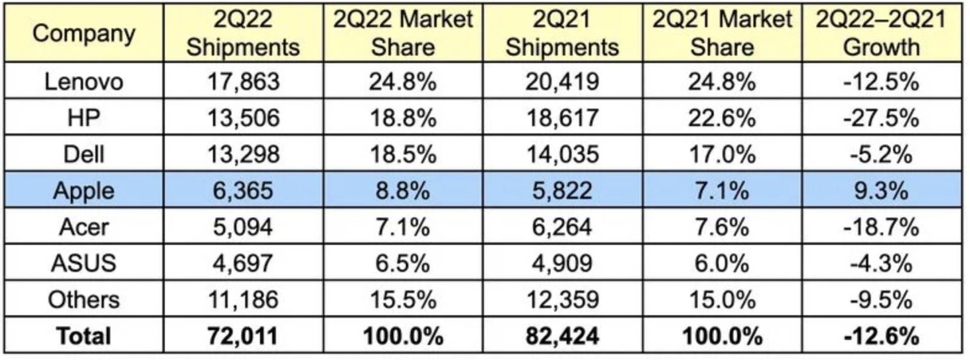 Pre lepšiu predstavu, zatiaľ čo počas Q2 2021 predala spoločnosť Apple 5,8 milióna kusov počítačov, v tom istom období v roku 2022 ich bolo až 6,4 milióna. Aj keď sa to na prvý pohľad nezdá ako veľký rozdiel, v skutočnosti predstavuje 9,3 % a stovky miliónov dolárov.